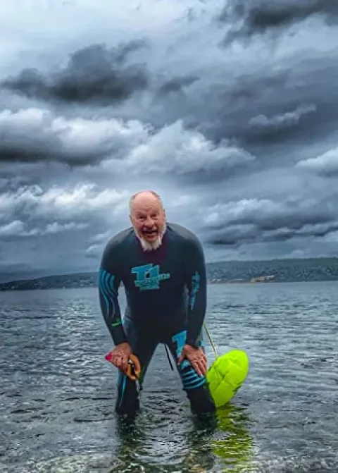- Stretchy 5mm thick rubber starts at the ankles, goes up to the crotch and around the sides of the hips to float the legs and hips more than any other wetsuit. Low profile 2mm Bib straps with soft Lycra trim go over the trapezius (base of neck) to allow unrestricted reach, prevents tired shoulders, and aids in faster swim times.