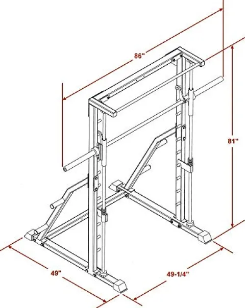 The Deltech Fitness DF4900 Smith Machine offers a comprehensive strength training solution for your home gym. Featuring precision linear roller bearings on solid steel bars, a 58 lb. Olympic bar with a 700 lb. capacity, and convenient rear supports for plate storage, this machine is designed for durability and performance. The chrome plated bar hook rods and weight holders add a touch of style to its functionality. Please note that weights are not included, and assembly requires two people. With its versatile design and quality construction, this machine is ideal for those looking to elevate their workout routine.