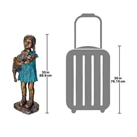 The Design Toscano “Can I Keep Him?” Girl and Dog Cast Bronze Garden Statue beautifully captures the bond between a child and her beloved pet, making it an enchanting addition to any home or garden. Crafted using the traditional lost wax bronze method, this statue features a stunning two-tone bronze and verdigris finish that enhances its intricate details and timeless appeal. Measuring 13″Wx12″Dx35″H and weighing 35 lbs., this piece is not only a striking focal point but also a testament to artisanal craftsmanship, as each statue is hand-finished by skilled artisans. Exclusive to the Design Toscano brand, it offers a unique charm that will delight animal lovers and art enthusiasts alike.