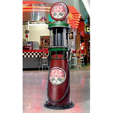 The Design Toscano Service Station Visible Gas Pump Metal Sculpture adds a nostalgic touch to any home or garden with its striking full-color finish and intricate details. Standing at 71.5 inches tall and weighing 49 pounds, this eye-catching piece is expertly hand-crafted by skilled artisans using durable all-metal construction, ensuring it withstands the elements while maintaining its charm. Each sculpture is individually hand-painted, making every piece unique and an exclusive addition to your decor. Perfect for vintage enthusiasts or anyone looking to elevate their outdoor or indoor space, this sculpture serves as a conversation starter and a standout decorative element.