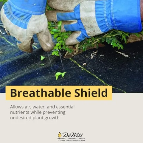 The Dewitt P6 PRO 5 Weed Barrier Fabric Ground Cover is an essential tool for maintaining a healthy garden or landscape, measuring 6′ W x 250′ L and available in a convenient pack of three. Crafted from durable, needle-punched woven polypropylene, this black weed barrier fabric is designed for optimal airflow, allowing air, water, and nutrients to reach your plants while effectively preventing weed growth. Its advanced formulation resists UV degradation, ensuring long-lasting performance. With an impressive seed germination rate of 90%-95%, it outperforms traditional methods like straw or hay. Installation is straightforward, featuring helpful alignment stripes every 12″ for precise plant placement. Trust in DeWitt’s 40 years of expertise in the lawn and garden industry to enhance your outdoor space with this reliable and effective ground cover solution.