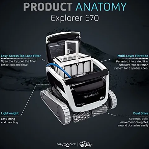 - ALWAYS CONNECTED: With the Dolphin Explorer E70 obotic pool vacuum cleaner, schedule your pool cleanings from anywhere with always connected Wi-Fi.