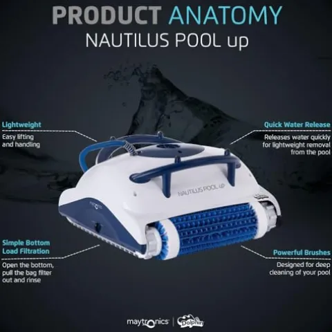 - SMART POOL CLEANING: Revolutionize pool cleaning with the Dolphin Nautilus Pool Up robotic vacuum. Ideal for small pools, one-touch automation to deliver pristine floors and walls.