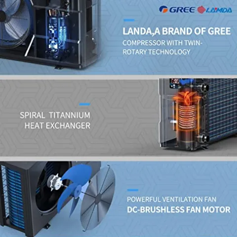 - MARKET LEADING TECHNOLOGY – The Dr. Heater heat pump is designed with industry-leading technology for top performance and stability. Our Full DC Inverter fan motor and compressor can adjust heating capacity between 20% – 100% for the most efficient operation. The compressor is designed with a twin rotary that operates together to balance the movement of each other for anti-shaking, which is higher efficiency, lower vibration & quieter operation.