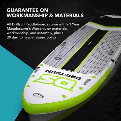 - 1 YEAR GUARANTEE: Thoughtfully designed & tested by a team that lives to paddle. Constructed from military-grade drop stitch PVC using MLS technology. All Driftsun paddleboards come with a 1-year guarantee + 30 days no hassle returns