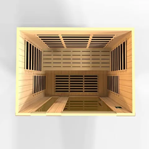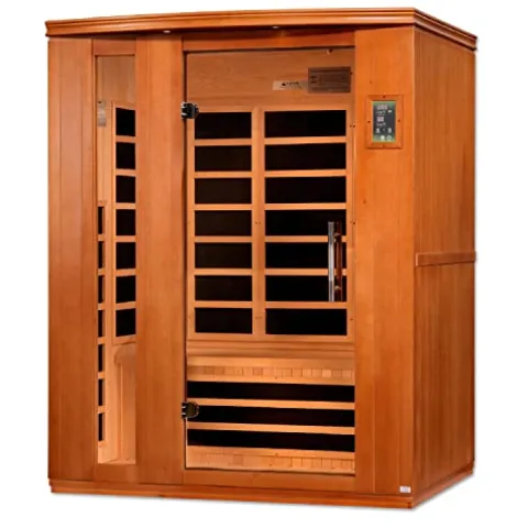 Experience the ultimate relaxation with the Dynamic Lugano 3-Person Low EMF FAR Infrared Sauna by DYNAMIC SAUNAS. This luxurious sauna in Carbon color boasts a spacious 3-person capacity and features 9 carbon heating elements for a soothing sauna experience. The sauna is constructed from natural Canadian Hemlock wood and comes equipped with an interior reading/chromotherapy lighting system for added ambiance. With a built-in Music System offering Bluetooth capability and 2 dynamic speakers, you can enjoy your favorite tunes while unwinding in the comfort of your own home. Elevate your wellness routine with this premium FAR Infrared Sauna that combines modern technology with traditional craftsmanship.