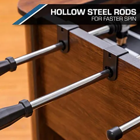 - STEEL PLAYER RODS & WEIGHTED PLAYERS – High performance play brought to you by hollow steel rods that encourage a faster spin while weighted and balanced foosball players allow for optimal player control.