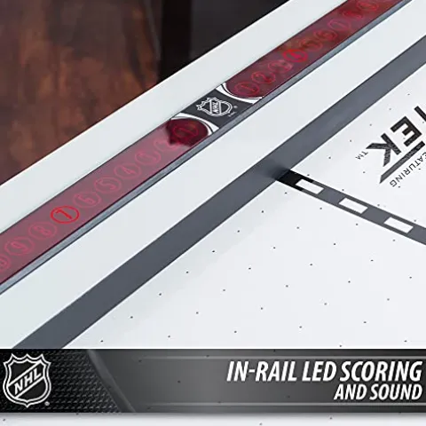 - AUTHENTIC ARCADE GAMEPLAY – Bring your NHL Hockey game to life with LED electronic scoring and real-life stadium sounds. Added suspense pairs well with its light-up power corners that pulse when hit and unpredictably deflect the puck back into play.