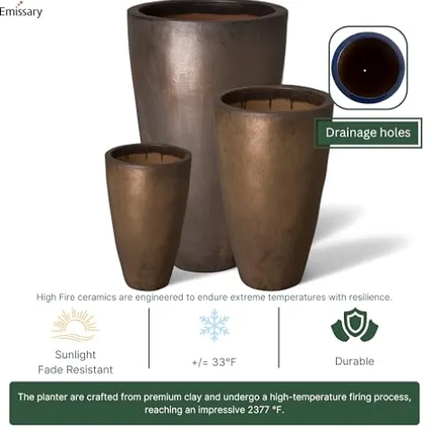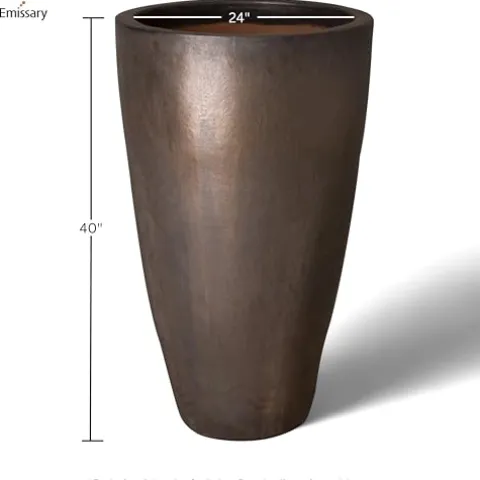 The Emissary 24in. L x 40in. H Metallic Stoneware Round Planter combines exquisite craftsmanship with an eco-friendly design, making it a striking addition to any indoor or outdoor space. Handcrafted from high-quality stoneware, this planter features a shiny metallic color and a semiglossy glaze finish that adds a touch of elegance and sophistication to your decor. Thoughtfully designed with drainage holes, it promotes healthy plant growth by preventing water build-up and root rot. Elevate your gardening experience while making a sustainable choice with this stunning planter, perfect for showcasing your favorite plants.
