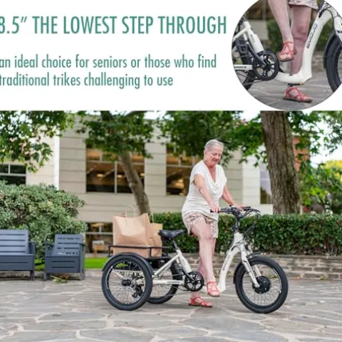 - Effortless Mounting 3 wheel electric bike with an 8.5″ Low Step-Through Design: With the industry’s lowest stand-over height of just 8.5 inches, the EMOJO BULL makes mounting and dismounting a breeze. This design is especially beneficial for riders with limited mobility, making it an ideal choice for seniors or those who find traditional trikes challenging to use
