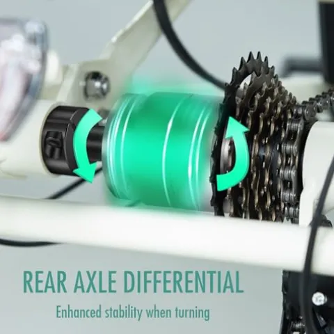 - Smooth and Stable Handling with Built-In Differential: Say goodbye to awkward cornering. Our electric trike with innovative differential system ensures superior stability and safety while accelerating, cornering, and braking, making every turn smooth and controlled