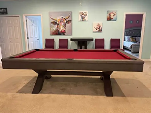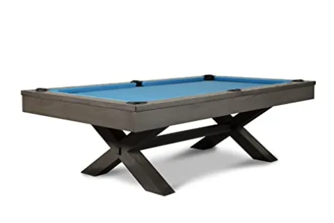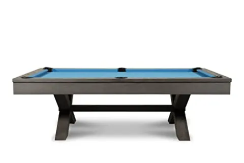 Experience the ultimate in luxury and precision with the Empire USA Manhattan Slate Pool Table. Crafted with wood construction and framed 3-piece 1″ slate, this 8FT table ensures durability and stability for accurate gameplay. Featuring K66 cushions for precise ball rebound, genuine leather drop pockets, and Championship Felt, this table offers a professional playing experience. The set includes premium billiard accessories by Empire USA, making it a complete package for enthusiasts. Professional installation is recommended to set up this exquisite charcoal-colored pool table.
