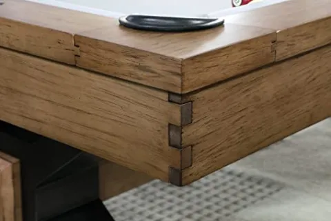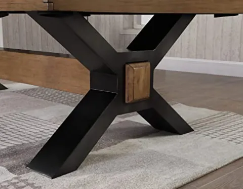 Enhance your game room with the Plank & Hide – Nichols Billiard Pool Table by Empire USA in Sorrell Brown. This exceptional table features a sturdy construction with massive 4.5″ x 2.25″ thick interlocking interior beams and solid wood craftsmanship. The metal leg design and genuine 1″ slate provide durability and stability for countless games to come. Complete with championship felt, billiards kit, real rubber bumpers, oversized pro series rails, and genuine leather enclosed pockets, this pool table offers both style and functionality for an unparalleled playing experience. Upgrade your space with this premium quality pool table that combines elegance and performance effortlessly.