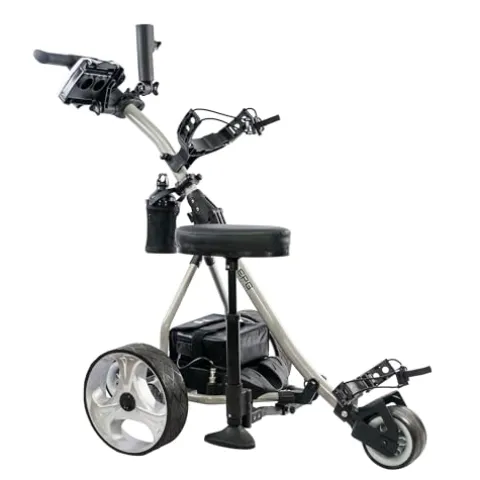 Enhance your golfing experience with the EPG Golf eR-Pace S Remote Control Electric Power Golf Trolley Cart Caddy in sleek silver. Equipped with a robust dual 200W motor and rear-wheel drive, this trolley offers seamless maneuverability with a remote range up to 100 yards and 9 speed settings. Its durable aluminum alloy frame and airless rubberized tires ensure reliability and ease of use, while the compact, foldable design simplifies transport and storage. The powerful 12V LiFePO4 lithium battery supports a full 36 holes on a single charge, with a lifespan exceeding 1,500 charges. Enjoy added convenience with included accessories like a detachable seat, scorecard holder, and umbrella holder. Whether tackling challenging terrains or enjoying a leisurely round, this trolley’s 30-degree climbing capability and 88lb load capacity ensure optimal performance.