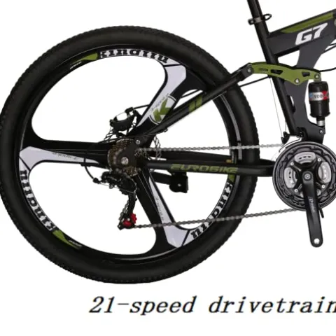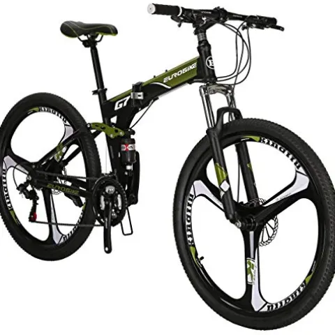 The EUROBIKE Folding Bikes, TSM G7 Bicycle in Armygerrn 3-Spoke color is a versatile and convenient option for cyclists. Featuring a premium carbon steel frame, this 27.5″ mountain bike with 21-speed capabilities is ideal for various terrains, from paved roads to daily commutes. With front and rear disc brakes, alloy wheels, and a foldable design, this bike offers both performance and portability. Designed for heights ranging from 5’5″ to 6’1″ and supporting weights up to 330 lbs, it provides a comfortable ride for many riders. Easy to assemble in just 15-25 minutes following the provided instructions, this bike can be easily folded and stored in the trunk of a car, making it a practical choice for on-the-go cyclists.