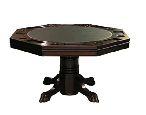 Enhance your game nights with the Fairview Game Rooms Combination 3 in 1 Poker/Game Table in a rich Mahogany finish. This versatile table seamlessly transitions from a dining surface to a poker or bumper pool table, offering endless entertainment possibilities. Crafted by Fairview Game Rooms, known for quality and durability, this table is a stylish addition to any game room or entertainment space. Enjoy hours of fun and friendly competition with this multifunctional game table.