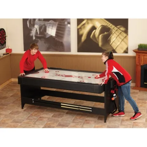 - Includes all of the accessories needed to play the games you love such as pool cues and billiard balls, hockey pucks and pushers, and table tennis paddles and net