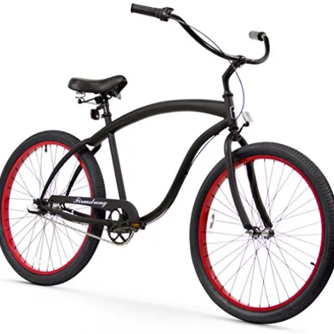 The Firmstrong Bruiser 3 Speed Men’s 26-Inch Beach Cruiser Bike in Matte Black with Red Rims combines style and functionality for a smooth ride. This cruiser bike features a 26-inch frame with three-speed gearing, making it perfect for tackling hills with ease. The extended steel frame provides ample space between the rider and handlebars, while the balloon tires and coaster brakes ensure a comfortable and safe ride. With an oversized seat and dual springs for added comfort, this bike is designed for men ranging from 5 feet, 4 inches to 6 feet, 4 inches tall. Enjoy a leisurely ride in style with the Firmstrong Bruiser 3 Speed Beach Cruiser Bike.