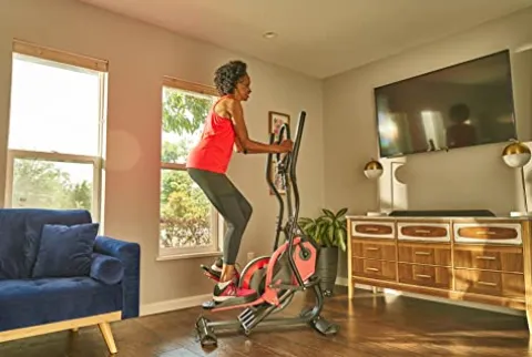 Enhance your home workout routine with the FITNATION by Echelon Flex Elliptical Trainer in a striking red color. This elliptical trainer offers a comprehensive workout, targeting arms, legs, glutes, and core muscles in one seamless motion. Featuring 8 levels of whisper-quiet magnetic resistance, users of all fitness levels can enjoy a customized workout experience. The trainer boasts large plate footholds and comfort grip handles for stability and focus during workouts. With a large multi-function display panel to track progress and a weight limit of 260 lbs, this elliptical accommodates various body types and fitness levels. Plus, enjoy a free 30-day trial of Echelon’s FitPass Membership, offering high-quality off-equipment workouts through the Echelon Fit app.