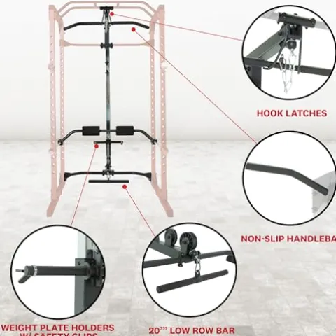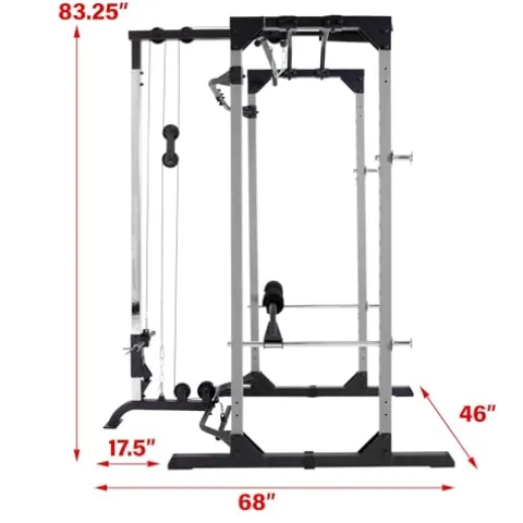 - 【POWER CAGE + LAT PULL DOWN COMBO 】- This combo package is the ultimate home gym setup! You get almost all the benefits of a traditional cable crossover + a Lat pull down system with an adjustable leg hold down bar.