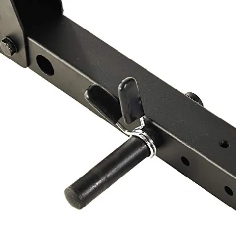 - 【HEAVY DUTY FRAME】- with an 800 LBS. Barbell Weight Capacity lets you workout with peace of mind. 2″x2″ Square Steel Frame with 1 inch holes allow you to add on standard sized attachments. Frame Compatible with barbells that have a 46 inch (collar to collar) grip width.
