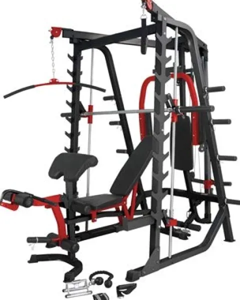 The French Fitness MSC10 Multi Function Squat Cage Smith (New) is a versatile and robust piece of equipment designed to enhance your workout routine. With accessories like an Ankle Strap, Seated Row/Chin Bar, Tricep Rope, Lat Bar, and 2 Standard Handles included, this multi-function squat cage offers a complete fitness solution. The cage boasts dimensions of 83 in D x 76 in W x 88 in H (107 in Depth w/Bench x 2200 mm x 1930 mm x 2230 mm) and a product weight of 336 lbs (152kg), making it ideal for light commercial use. Backed by a full manufacturer’s warranty of 10 years on parts and 1 year on labor for light commercial settings, this squat cage is built to last. Experience convenient curbside delivery, as this product ships new in the manufacturer’s packaging.