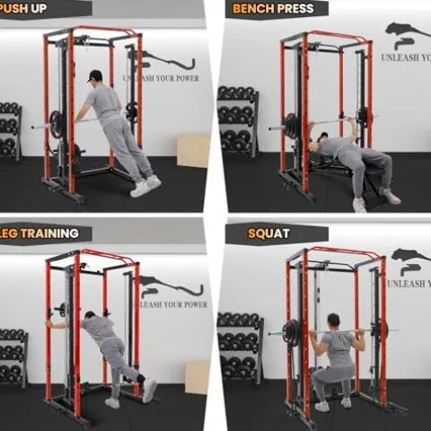 Elevate your home gym with the GarveeLife Power Cage with SmithBar, a premium power rack designed to support up to 1600 lbs for a gym-quality workout experience. Featuring a vibrant red finish, this versatile equipment offers endless training possibilities—from squats and bench presses to pull-ups and dips—ensuring a comprehensive strength training routine. Its fully equipped design comes with 21 free attachments, including a SmithBar and nylon safety straps, making it ideal for both beginners and seasoned athletes. Crafted with durable 2″ x 2″ steel uprights and a compact footprint of just 12.1 square feet, it provides ample space for a variety of exercises without overwhelming your home. Easy to install with thorough instructions and exceptional customer support, the GarveeLife Power Cage offers a seamless blend of functionality, safety, and space efficiency.