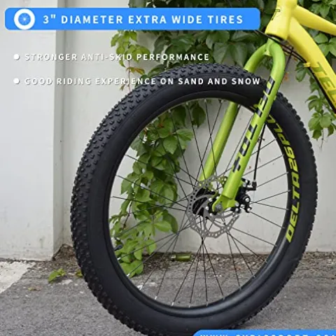 Conquer any terrain with the 26 Inch Mountain Bike, Mens Fat Tire Bicycle. Equipped with 26-inch wheels and 3-inch wide tires, this bike is designed for ultimate grip and obstacle-conquering ability, from roads to trails to snowy paths. The 7-speed rear derailleur ensures smooth shifting for acceleration, climbing, or maintaining speed. Its high-carbon steel frame provides durability and performance, while the dual disc brake system offers reliable stopping power and speed control. Easy to assemble with tutorial videos included, this bike is ready for any adventure right out of the box.