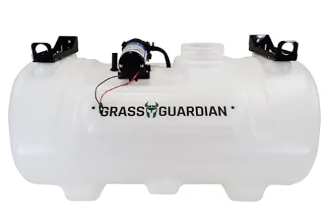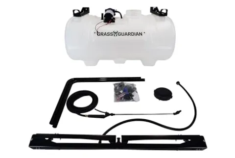 The Generic Grass Guardian 40 Gallon UTV Broadcast Sprayer is designed for efficient and effective application of fertilizers, herbicides, and pesticides across large areas. With a generous 40-gallon translucent tank featuring raised volume markings, monitoring your liquid levels is effortless. The sprayer boasts a 10-foot broadcast spray swath for wide coverage and the capability to spot spray up to 30 feet horizontally, making it ideal for tackling tough spots with precision. Powered by a reliable 2.2 GPM 12V Everflo diaphragm pump, it ensures consistent performance, while the 15-foot rubber hose provides ample reach for detailed spraying tasks. Perfect for both professional landscapers and dedicated homeowners, this sprayer is a must-have for maintaining vibrant and healthy landscapes.