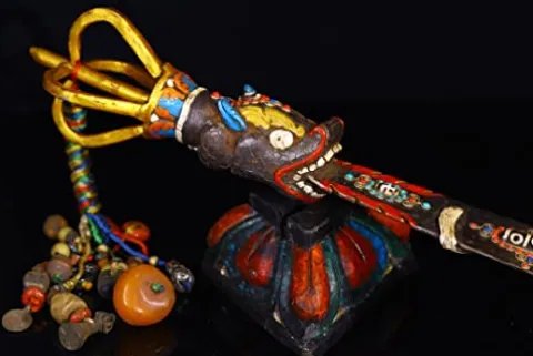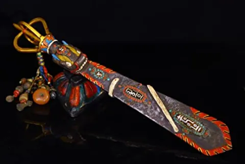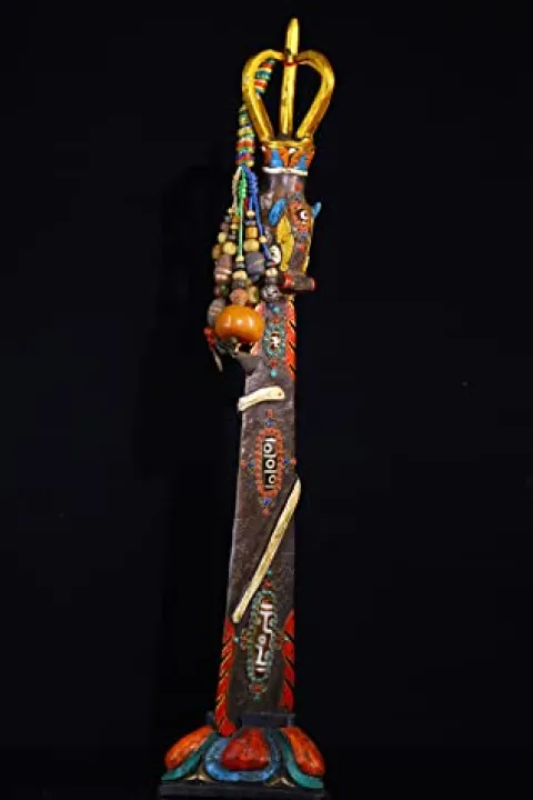 Enhance your living space with the 23″ Tibetan Temple Collection, a captivating piece that marries tradition with artistry. This extraordinary item features meticulously crafted Tiantie painted mosaic gem Dzi beads, complemented by intricately designed animal heads. Its stunning bronze structure exudes a timeless elegance, while the inclusion of powerful symbols like the Dorje Vajra and Phurpa signifies protection and spiritual balance. Ideal for those seeking a unique and meaningful decorative accent, this magic weapon town house piece serves as both a conversation starter and a cherished addition to any home.
