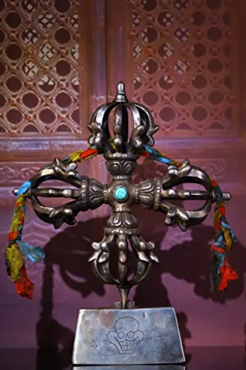 Enhance your space with the 15″ Tibetan Temple Collection Tiantie Mosaic Gem Skull Head Cross Nine Shares Animal Pattern Vajra Magic Weapon Base Town House. This exquisite piece, crafted from durable bronze, is a stunning fusion of traditional Tibetan artistry and mystical symbolism. Its intricate design features a mosaic of gems and a skull head motif, representing both protection and power. Perfect for collectors and enthusiasts of spiritual artifacts, this unique item serves as a striking centerpiece or conversation starter in any home or sacred space. Whether you seek to elevate your décor or harness its symbolic energy, this extraordinary piece from the Generic brand promises to captivate and inspire.