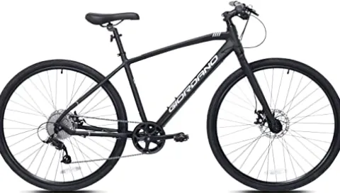 The Giordano H1 Men’s Hybrid Bicycle is a sleek and reliable choice for urban commuting or leisurely rides. With its 7000 series aluminum frame and aluminum fork, this bike offers a lightweight yet durable construction. The Microshift 8 Speed Drivetrain ensures smooth and efficient gear shifting, while the front and rear disc brakes provide reliable stopping power. In a stylish black color, this Giordano hybrid bicycle combines performance and style for a comfortable and enjoyable riding experience.