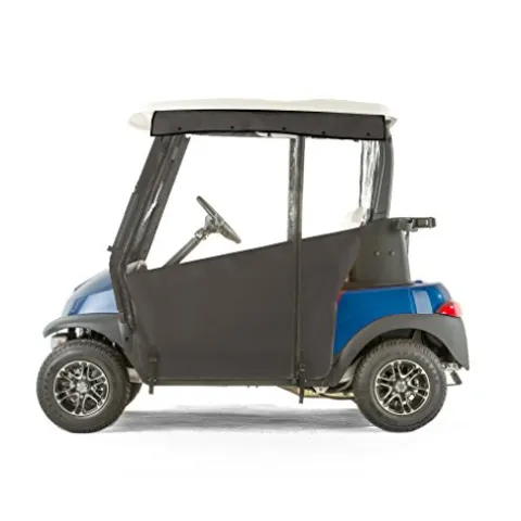 Shield yourself from the elements in style with the Golf Cart King Club Car Precedent PRO-Touring Sunbrella Track Enclosure in Black. This high-quality 3-sided track style enclosure is designed for the Club Car Precedent model, ensuring a factory custom look and feel. The Sunbrella zipper extrusions wrap around the front struts for a perfect fit. Made in the USA, this enclosure is the most versatile in the industry, offering both protection and a sleek aesthetic for your golf cart.