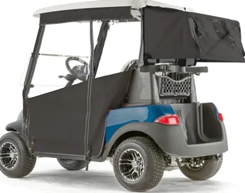 Transform your Club Car Precedent into an all-weather vehicle with the Pro-Touring Golf Cart Enclosure by Golf Cart King. Designed specifically for your model, this sleek black enclosure offers a factory-custom appearance, thanks to its precision cuts and high-quality 3-sided track style design. Unlike universal enclosures, this model-specific fit ensures durability and a refined look. The zipper extrusions expertly wrap around the front struts, providing a snug and secure fit that stands up to the elements. Proudly made in the USA, this versatile enclosure also includes a bag cover, making it the ultimate choice for golfers who demand both style and functionality.