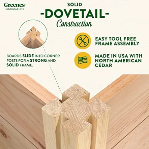 - EASY TO SET UP: Greenes Fence raised garden beds use dovetail interlocking joints, which makes assembly a breeze. Each board slides into the corner posts without tools to form a secure open-bottom garden frame. Every corner post is routed on all four sides for easy assembly and expansion. The decorative tops can be added to each post using a screwdriver.