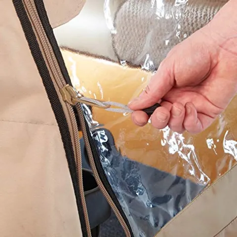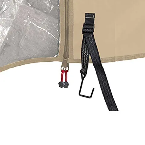 - Super clear double polished vinyl windows – 4 sided enclosure easily fits over roof – Roll up doors on each side – XT Super duty double zippers with glove pulls – Lock down “J” hooks – Clear Rear Panel Allows for Tailight Visibility