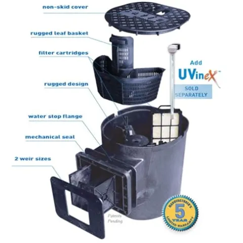 - Includes DVD installation video. May ship in more than one box. Warranties: EPDM LifeGuard Pond Liner – Limited Lifetime; 16″ Waterfall Filter and Skimmer – 5 years; 3,000 GPH Pump – 2 years; Lighting – 5 years