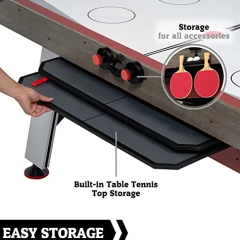 - TWO GAMES IN ONE & STRONG AIR FLOW: This 5.5’ hockey table is built for fast air-powered hockey and comes with a table tennis top that matches the Arcade table design and stows neatly underneath; making it a great addition to family game rooms