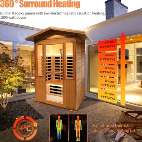 - Outdoor Sauna: The internal dimensions of this personal sauna are 45.66*35.43*68.58 inches.1800w of power and 8 low EMF heating panels provide fast heating, and the spruce and glass construction locks in the temperature firmly, allowing you to experience the ultimate comfort!