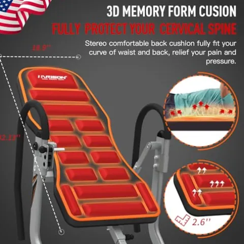 Experience relief from back pain with the HARISON Heavy Duty Inversion Table. Boasting a 350 lbs weight capacity and 3D memory foam backrest, this inversion table offers superior comfort and support. Its full range upside-down back stretcher allows for 180-degree inversion, providing a customizable experience for exercise, pain relief, and relaxation. The quadruple protection safety features ensure a secure and comfortable inversion session, while the convenient foldable design allows for easy storage. With a commitment to customer satisfaction, timely service, and generous warranty, the HARISON Inversion Table is an ideal fitness gift for your loved ones.