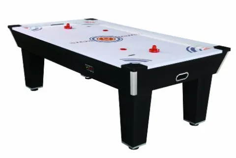 - Air hockey table; comes with four strikers, four pucks, and leg levelers