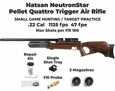 - IN THE BOX: 1 x Hatsan NeutronStar NEW .22 Cal Air Rifle; 1 x Pack of 250ct Pellets; 1 x Pack of 100x Paper Targets