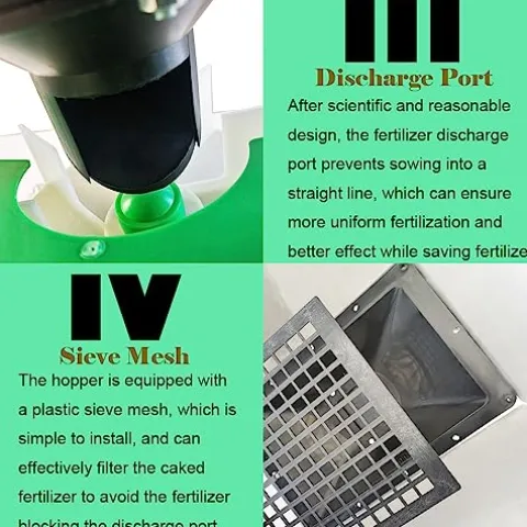 The HayWHNKN Broadcaster Spreader combines power and efficiency, featuring a robust 150W pure copper motor designed for long-lasting performance with a 12V battery. Its spacious 42.3-gallon (160L) stainless steel hopper minimizes the need for frequent refills, allowing for seamless fertilizer application. The user-friendly 16-gear output control handle provides precise adjustments for optimal coverage, while the 3.5m cable ensures flexibility during operation. Easily attachable to most ATVs or tractors, this spreader’s versatile installation options make it a practical choice for all your fertilizing needs. Enhance your gardening or farming efficiency with this durable and easy-to-clean spreader, built to tackle any terrain.