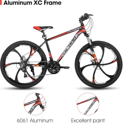 - 【High tech Frame】Hiland H200 mountain bike has Light Aluminum frame is packed with features that make your ride better. Good performance suspension fork is playful enough for new riders,withstand many tough terrain mountain trails or daily commutes.