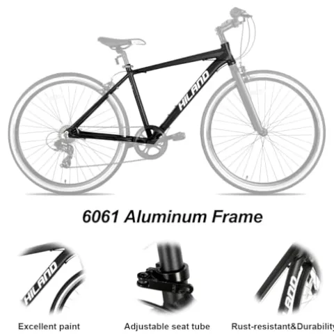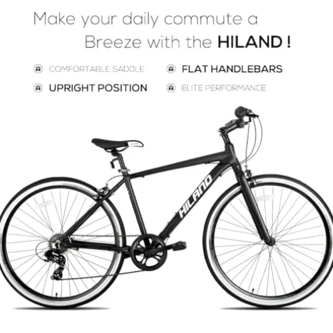 - HYBRID BIKE: Experience the comfort and style with hiland hybrid bicycle, featuring a cushioned seat and mountain handlebar for smooth commutes, outdoor fitness, and touring adventures.