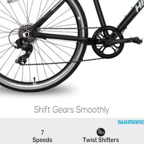 Experience the ultimate comfort and style with the Hiland Men’s and Women’s Hybrid Bike in Black from HH HILAND. This urban commuter bike features a cushioned seat and mountain handlebar for smooth commutes, outdoor fitness, and touring adventures. With a 7-speed Shimano drivetrain, smooth and accurate gear changes are at your fingertips with easy thumb shifters, ensuring a stable riding experience. Equipped with dual caliper brakes for reliable braking in any condition, the durable step-over or step-through frame is designed for both men and women, making it a versatile choice for adult riders. With 85% assembly complete upon arrival, enjoy easy setup and get ready to hit the road on this lightweight yet durable city road bike.