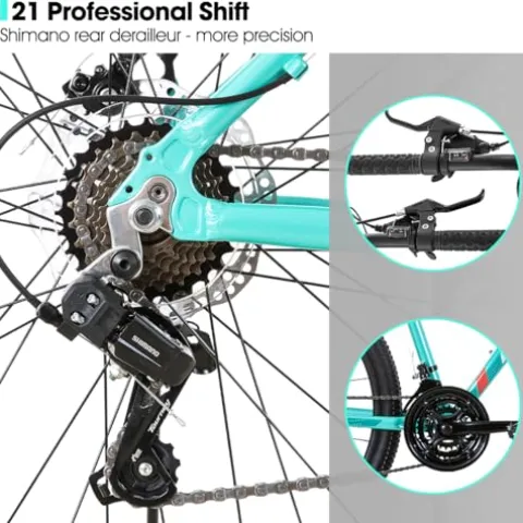 - 【Brake&Shifter】Dual mechanical disc brakes provide you better durability and stopping power even in rainday.21 Speed- drivetrain provides precise and quick shifting.A wide range of gears give you more control for climbing,descents and corners to enjoy riding.