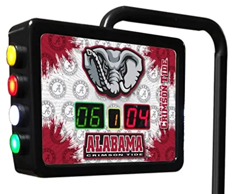 Enhance your shuffleboard game experience with the Holland Bar Stool Co. Alabama Elephant Electronic Shuffleboard Scoring Unit. Officially licensed and adorned with digitally printed, full-color graphics, this scoring unit adds a touch of style to your game room. The color-coded, push-button counter allows for easy tracking of 2 player scores and game count. Measuring 15″(W) x 11 1/2″(H) x 3 1/2″(D), the scoring unit is complemented by a 51″ tall support that extends over the playfield. Versatile and adaptable for various games, the mounting plate can be easily attached to the side of the game with included shims for a secure fit. Elevate your shuffleboard game with this sleek and functional scoring unit.