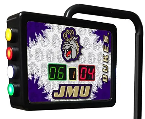Elevate your shuffleboard experience with the Holland Bar Stool Co. James Madison Electronic Shuffleboard Scoring Unit. Featuring vibrant, officially licensed, digitally printed graphics, this scoring unit adds a touch of style to your game room. The color-coded, push-button counter simplifies tracking scores for two players and keeps a game counter with ease. Its compact size of 15″ x 11.5″ x 3.5″ fits seamlessly into any setup, while the 51″ tall support ensures it extends conveniently over the playfield. Designed for versatility, the unit includes a mounting plate adaptable to most games, with optional shims for perfect positioning. Transform your game nights with this reliable and visually appealing scoring solution.
