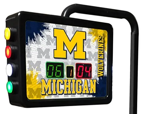 Track your shuffleboard game with ease using the Holland Bar Stool Co. Michigan Electronic Shuffleboard Scoring Unit. This officially licensed unit features digitally printed full-color graphics for a vibrant look. The color-coded push-button counter allows for efficient 2-player scoring and game counting. Measuring 15″ in width, 11 1/2″ in height, and 3 1/2″ in depth, the scoring unit is complemented by a 51″ tall support that extends over the playfield. Versatile and adaptable, this unit can be mounted to the side of almost any game, with a mounting plate included for easy installation. Keep your games organized and exciting with this high-quality scoring unit.